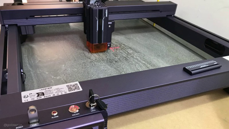 What this means is that on each pass the laser head will drop, which enhances cutting depth. Atezr says that it is a 25% increase in sinking depth compared to other brands with the same power.