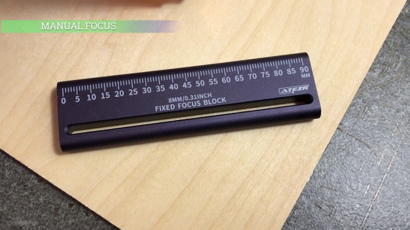 Or you can stand the Fixed Focus Block up against the laser head and adjust the distance using the knob on the top of the laser head.