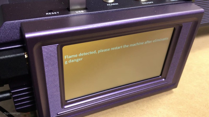 There is an alarm that warns you if flames are detected. Remember you are burning through material you may have the odd time when something will catch alight.