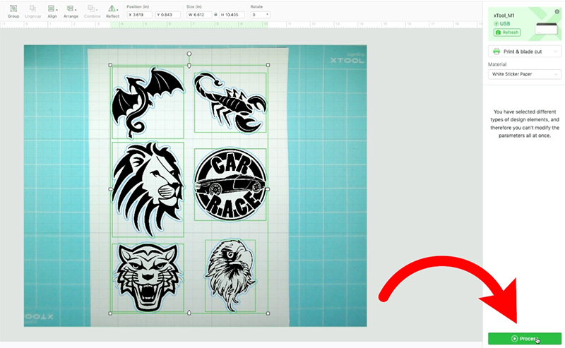 This gives you the opportunity to and make sure everything’s in the right place and is nicely placed on the sticker paper. It’s at this point that you can stop and make changes if you need to.