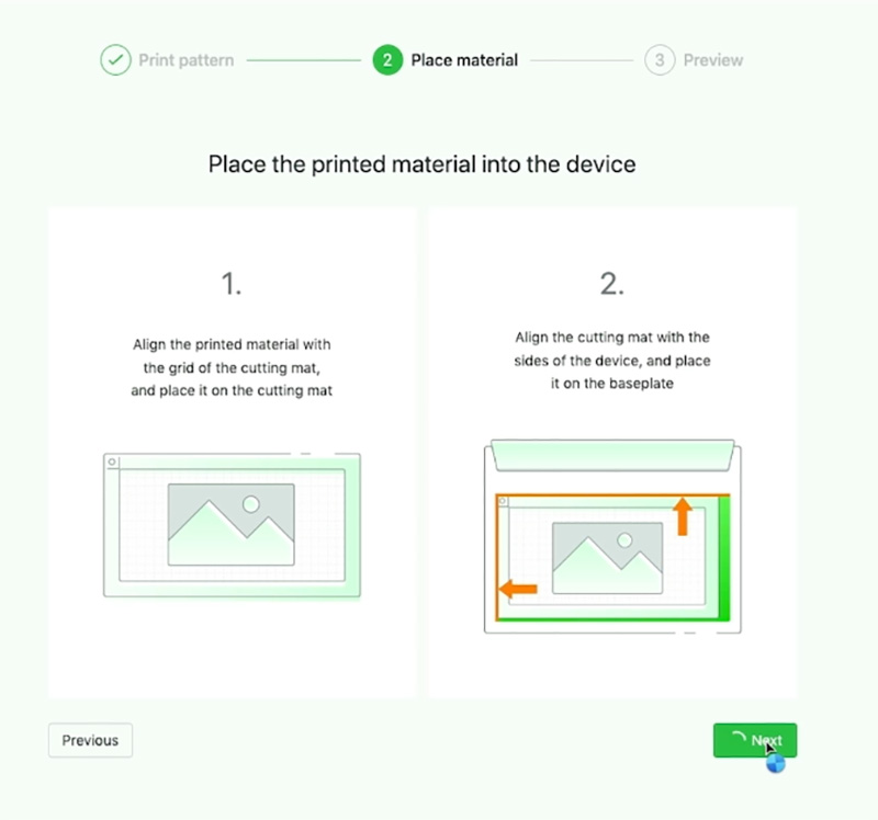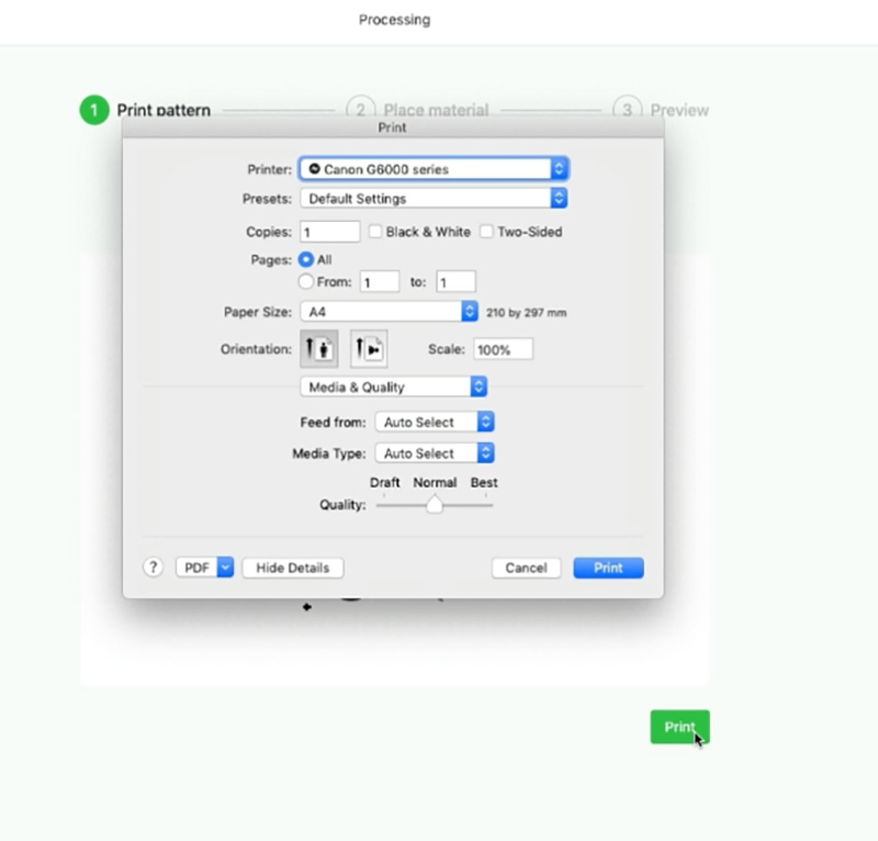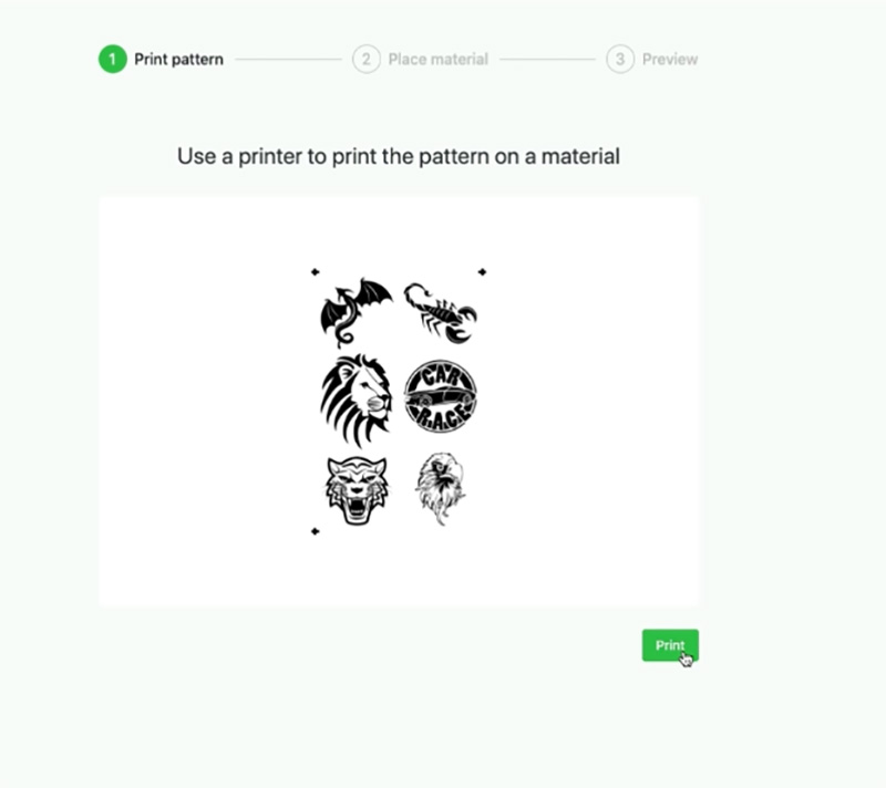 On the next screen it says ‘Use a printer to print the pattern on a material’.