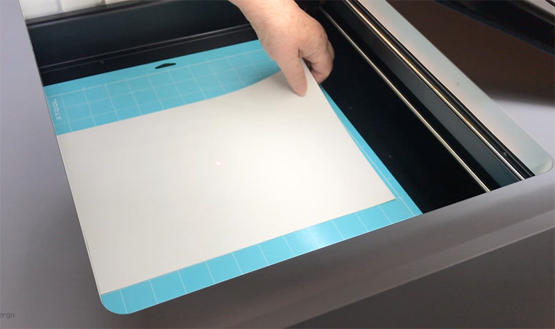 When I close the lid of the machine, it takes an image of the white sticker paper sitting on the mat. You can see how that looks back in the software.