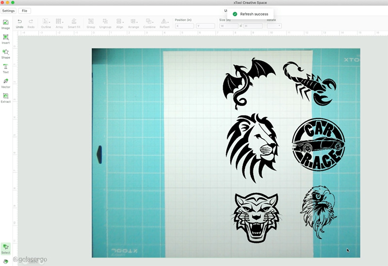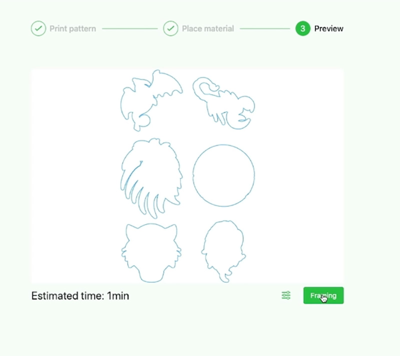 The laser head will move around and just outline where all the images are. (Watch the video above to see this in action.)