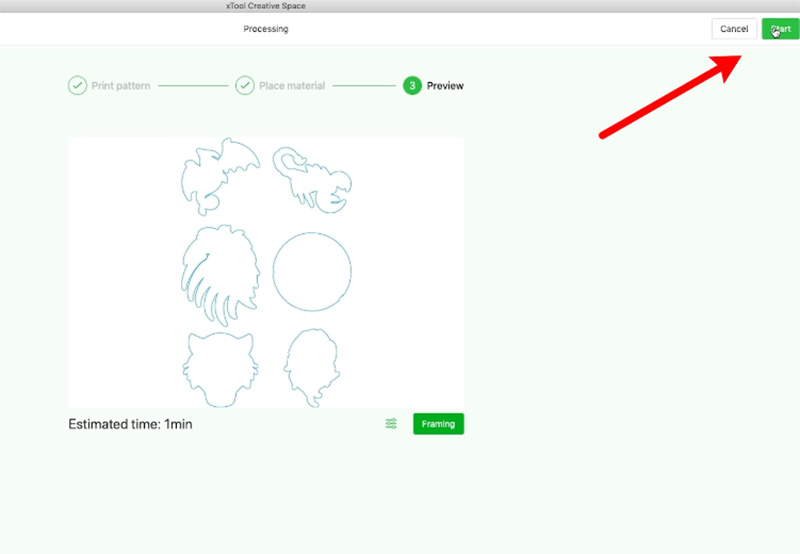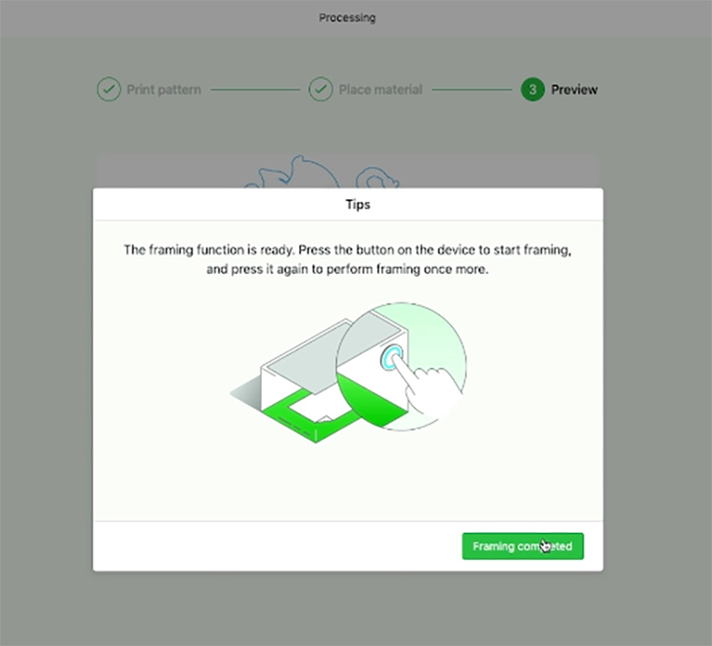 All we need to do now is click the Framing button and then click the button on the front of the M1 to start the machine running.
