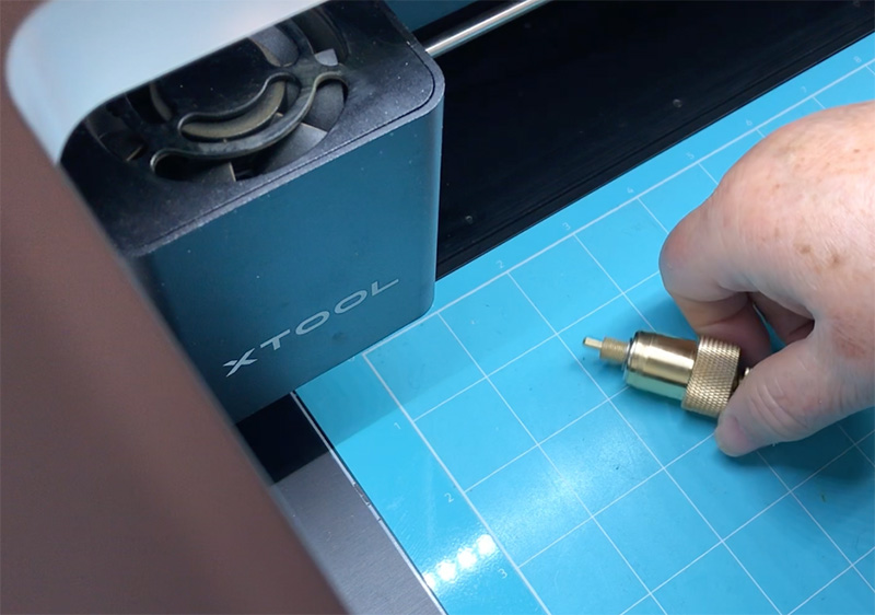 Insert the blade holder into the machine. We are going to be doing a blade cut so we won’t be using the laser function. (Watch the video above to see how this is done.)