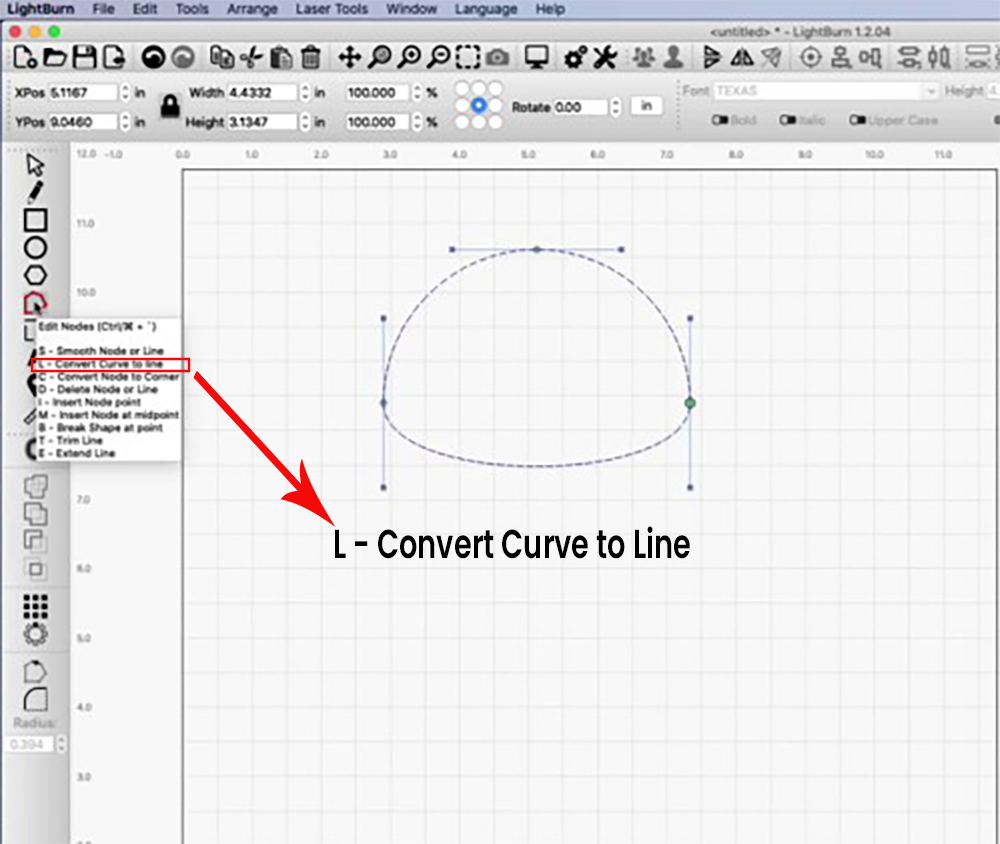 Come back to the Edit Nodes option. It will still be selected but now we need to check which letter we need to convert this rounded shape to a line. This is the letter L.