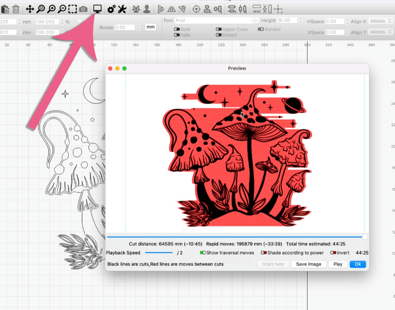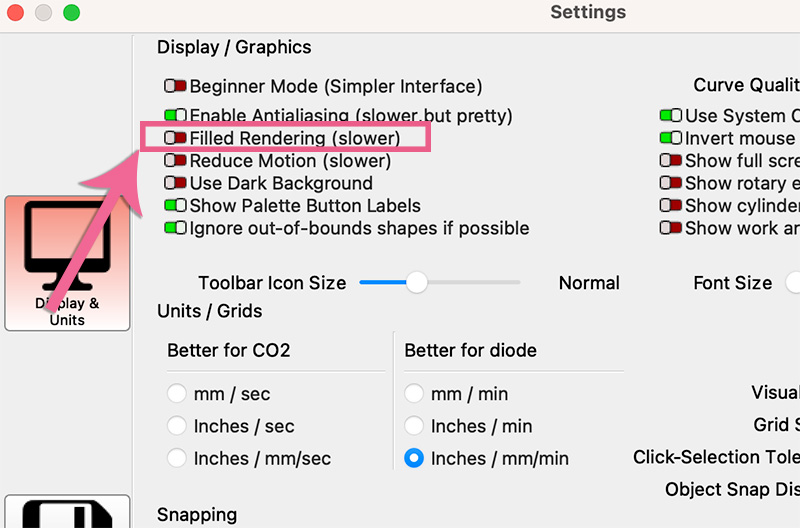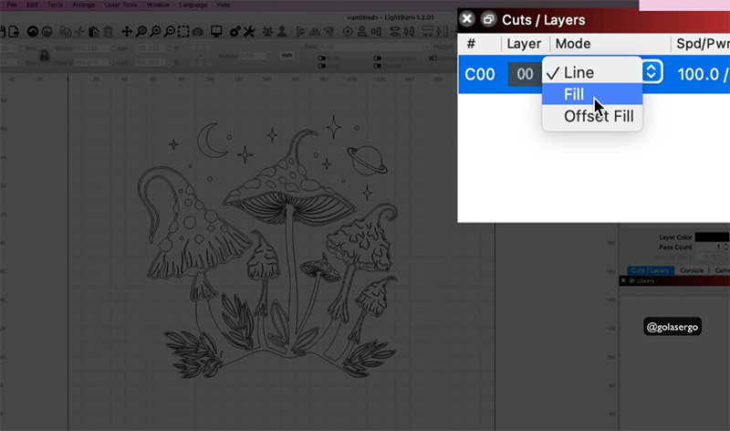 You may have noticed when using LightBurn that when you select the Fill option, there are no changes to the image in the main window. Your image still looks like a line drawing.