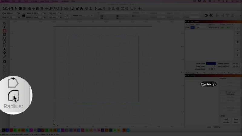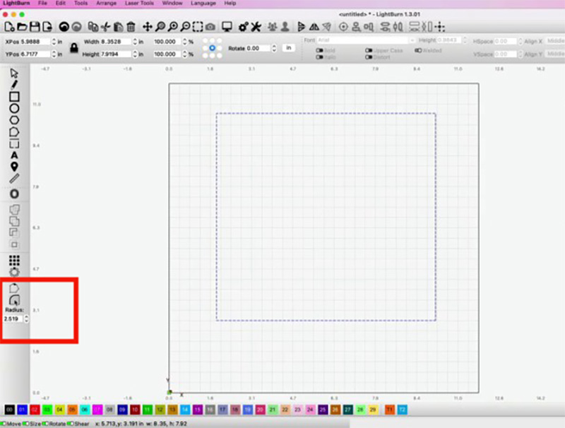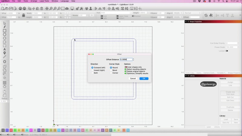 There are a few ways to round corners in Lightburn.