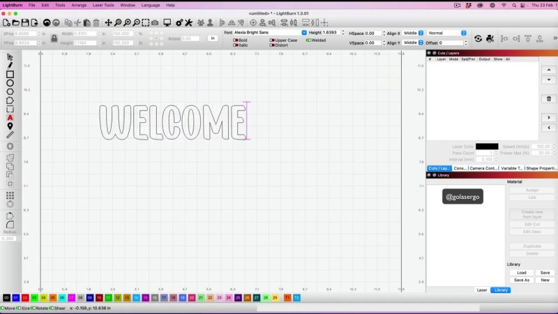 For this exercise I’m going to type the word Welcome and I’m using the font – Alexia Bright Sans which is available from Creative Fabrica.