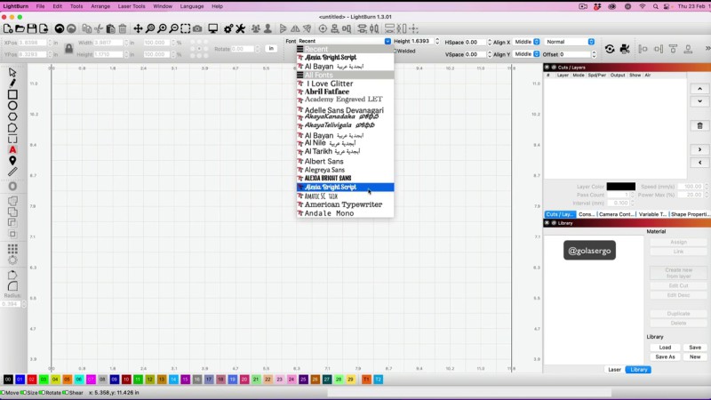 Select the Text option and select a script font – I am using Alexia Bright Script from Creative Fabrica.