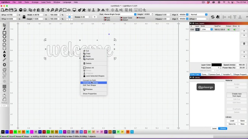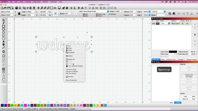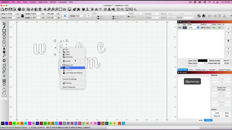 I’m going to show you how to separate and ungroup text in Lightburn. Why would you want to do this?