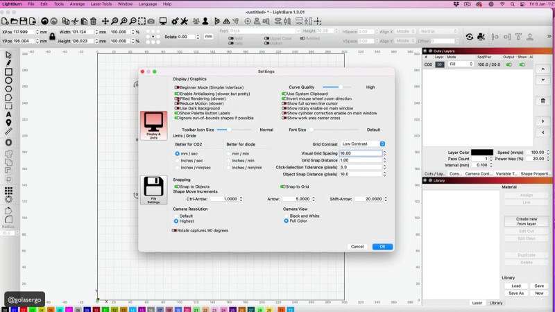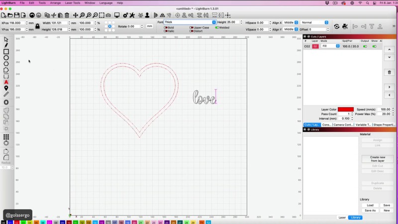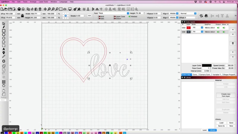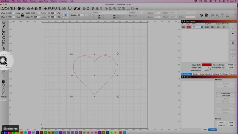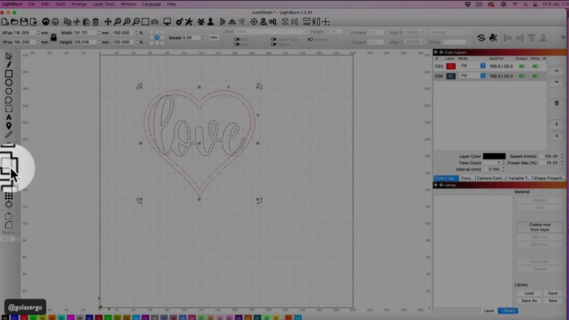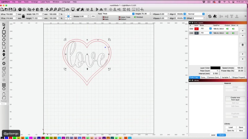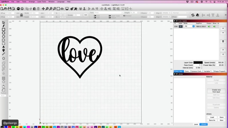 Once we have our font and our graphic on our computer, we can go into our Lightburn Software.