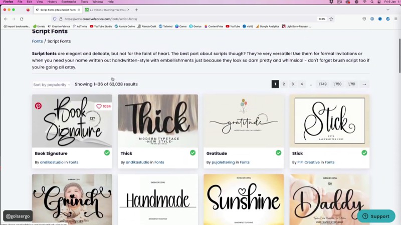As you can see here there are loads to choose from in the script font, in fact there’s 63,000 different results available.